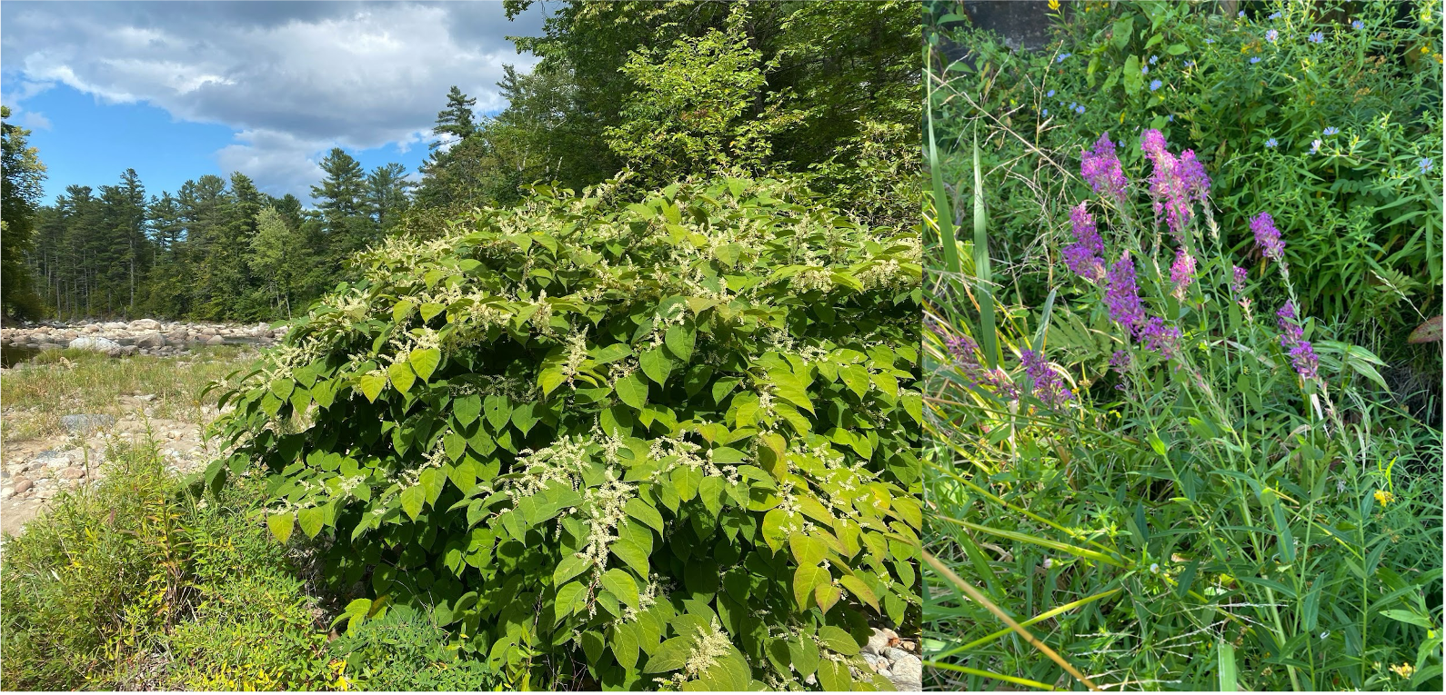 Keep an eye out for invasive species especially in revegetating areas. Japanese knotweed (left) and purple loosestrife (right) are common invasive species in the Ausable watershed.