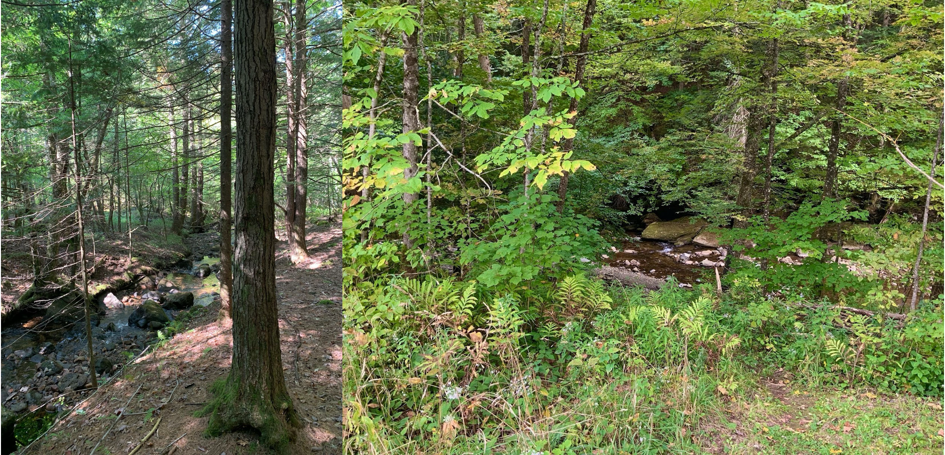 - Duff (pine needles, woody debris, leaves): disperses rainwater to minimize water channels from forming and carrying sediment to stream.