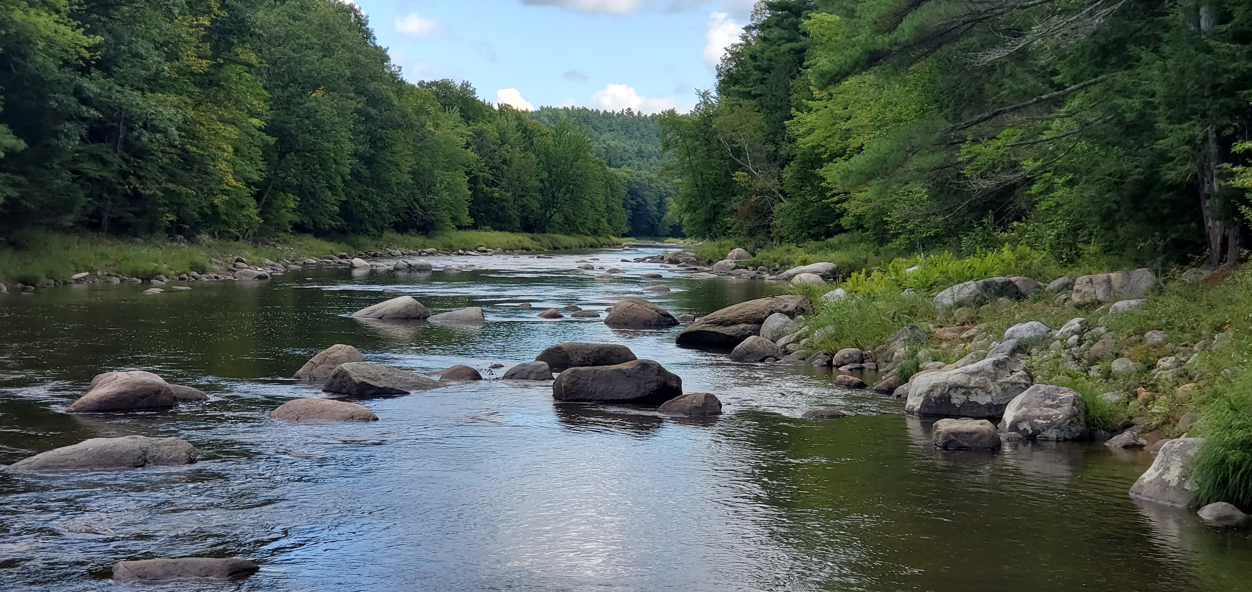 Healthy, stable sections of the East Branch, like this section of the river in the Town of Jay, serve as guides for our restoration designs. We strive to recreate what works on natural, functioning rivers to bring stability to areas that are out of balance.