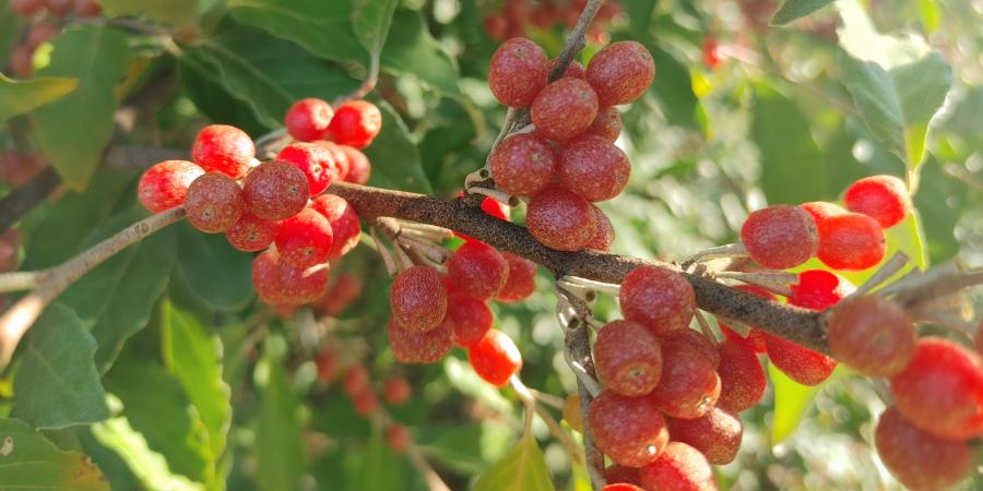 Walking along a stream, roadside, or the edge of a field on a breezy day, you may catch flashes of silver in the greenery. Take a closer look. You might have found a pocket of autumn olive – a beautiful, but invasive shrub with an interesting story.