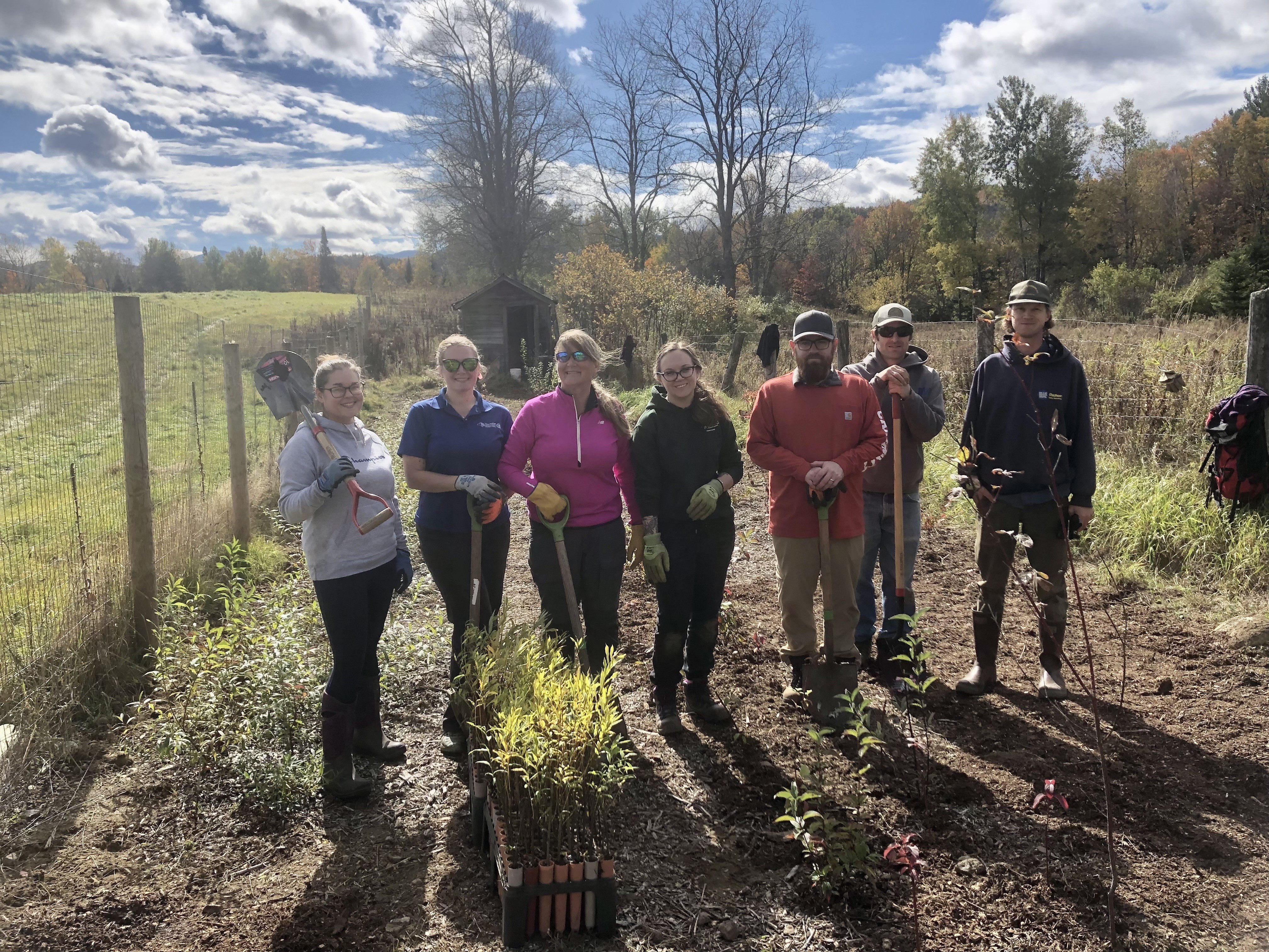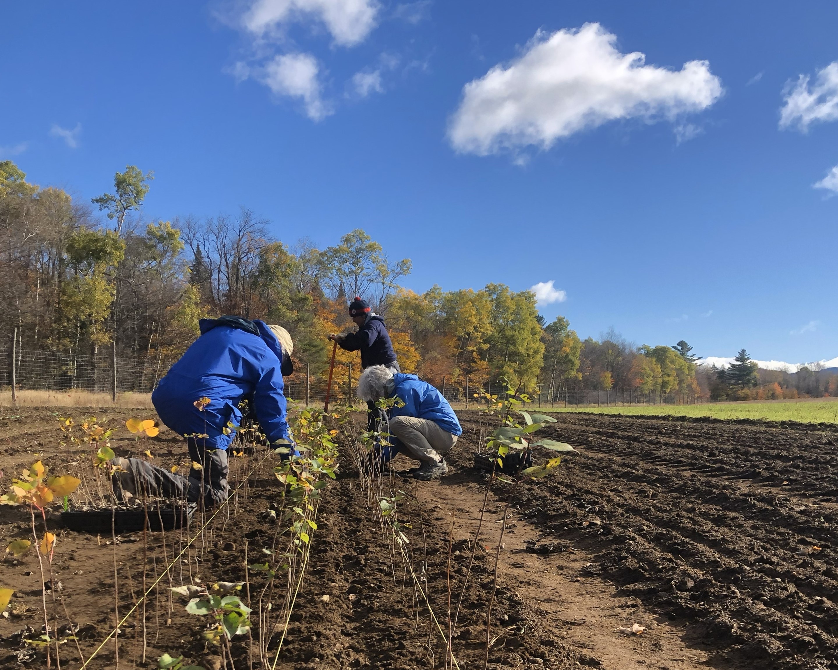 Volunteers assist with planting in the production field at ACN. These plants will grow in the field for a season or two before being harvested and planted on a riverbank in our watershed.
