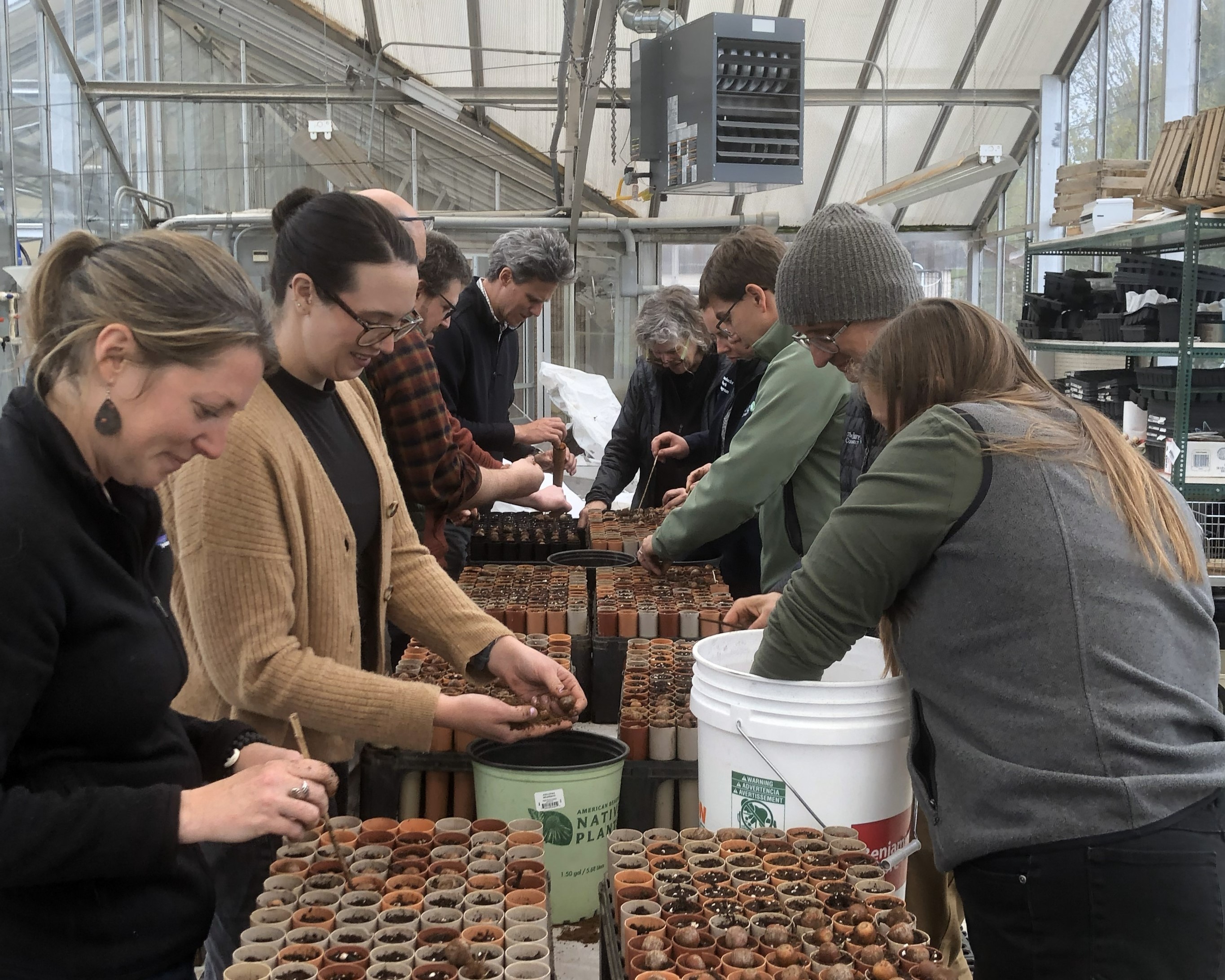 Volunteers play an essential role throughout the year. From collecting hardwood cuttings in the winter to helping with propagation in the greenhouse each spring; from planting at the nursery to assisting with field restoration projects in the summer and fall, community members are deeply woven into every stage of our work. Each season brings new opportunities for engagement, and every helping hand contributes to the success of our shared environmental goals. The energy and enthusiasm of volunteers make a tangible difference, whether they are preparing soil beds, watering seedlings, or harvesting native seed. When the call goes out for help, our community shows up, ready to get their hands dirty for the sake of clean water, healthy forests, and thriving ecosystems.