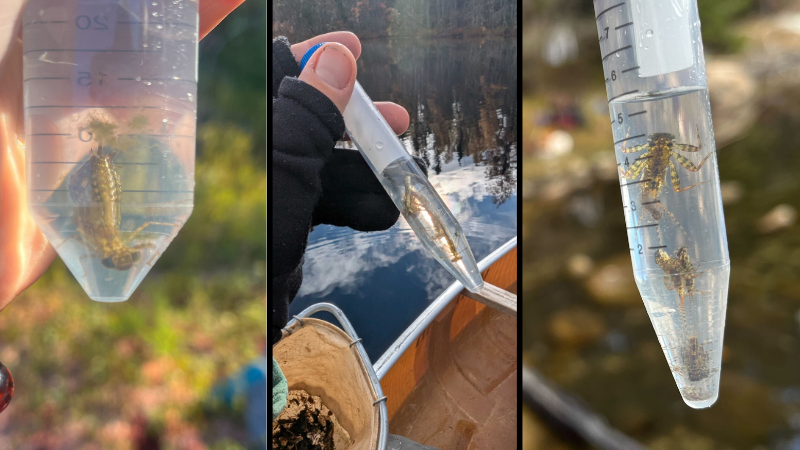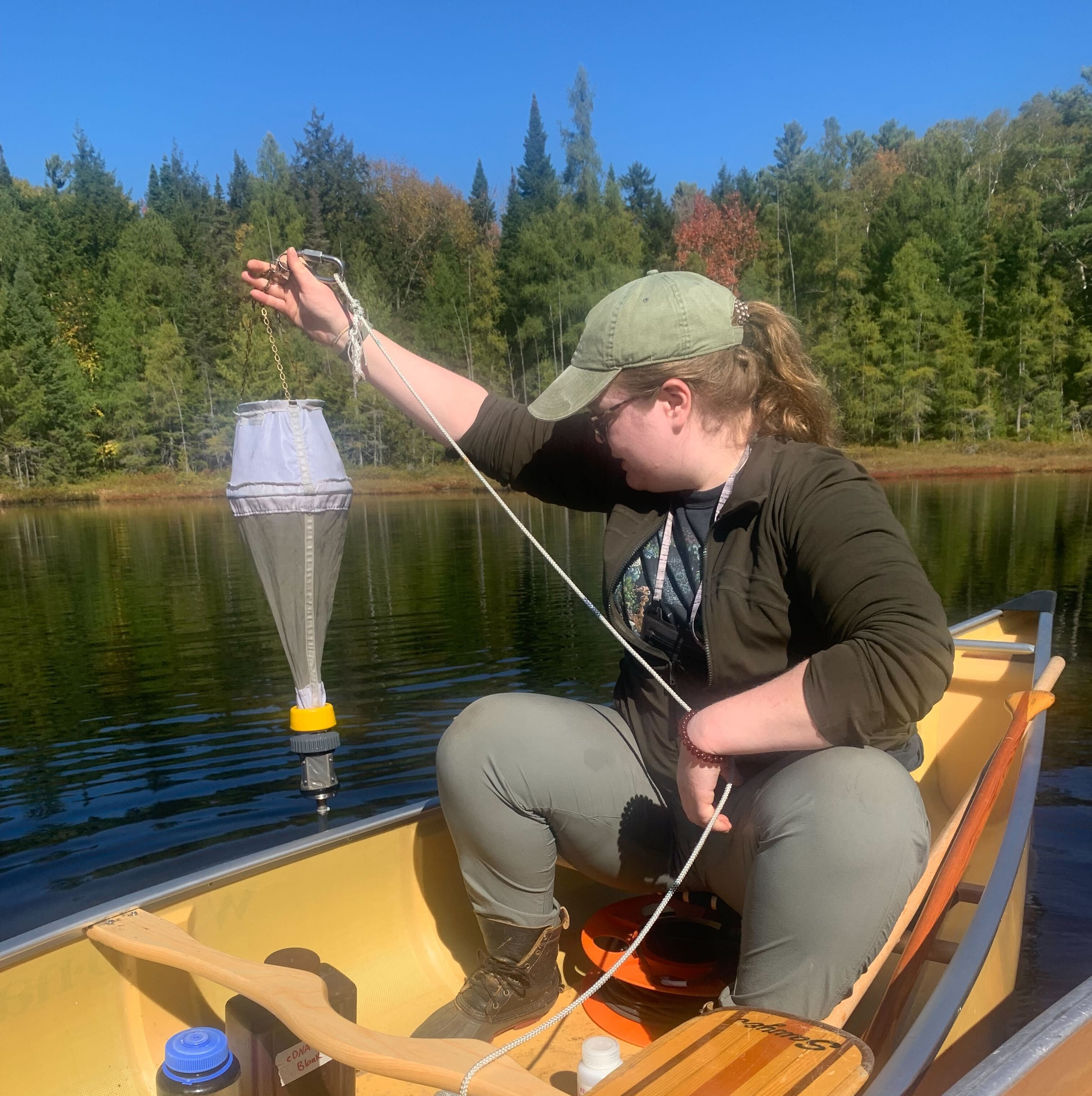 Environmental DNA (eDNA) is genetic material found in environmental samples such as soil, sediment, and water. Utilizing eDNA is much easier and less invasive than historical sampling techniques, as many species can be identified in a small amount of water. In the past, researchers typically netted lakes to learn about fish populations, which provided a snapshot into fish communities. eDNA is not harmful to fish or other species, so it can be performed several times over the field season, and it can detect species that are less likely to be captured through netting, such as bottom-dwelling species.